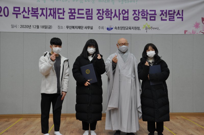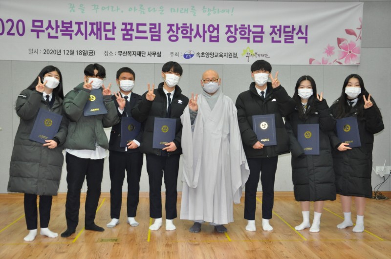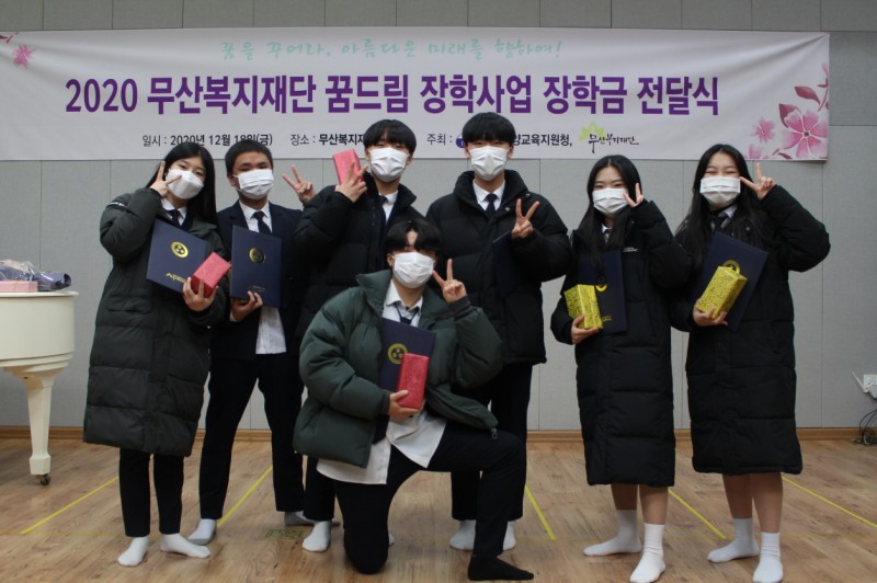 2020년 무산복지재단 꿈드림 장학사업은 코로나19로 인하여 장학캠프는 생략하고 12월 4일 장학금 전달식만 개최하였습니다.